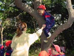 | 大きな木 全身の筋肉を使って登ってごらん。 次はどの枝につかまろ。 どの枝に足をかけよう。 考えてごらん。 枯れてる枝、わかるでしょ。 枝の先を見てごらん 葉っぱが無いでしょ。 座りごごちの良い枝見つけたかい。 木の上でお弁当。 |