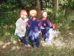| 園庭、公園などで遊び慣れている子ども達、自然の中で思いきり遊べるだろうか? 遊び道具が何もないなんて言わないで。 遊び道具は自然の中にたくさんあるよ。 |