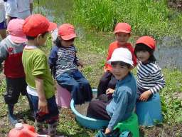 アッ、ザリガニいた 先生早く捕まえてよ。